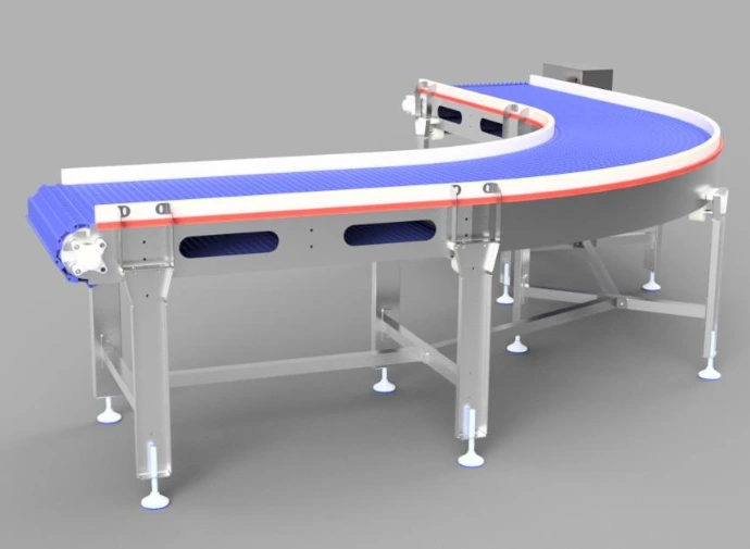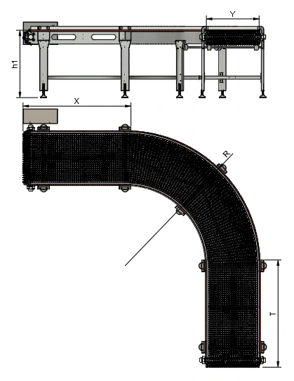 90° dönüşlü konveyör, üretim hatlarında ürün akışını yön değiştirmeden, duraksamaya neden olmadan yeni hatta aktarmak amacıyla kullanılır. Özellikle sınırlı alanlarda, hat geometrisinin zor olduğu tesislerde düz konveyörlere kıyasla ciddi yer tasarrufu sağlar. Firesiz temiz, sağlam ve dokusuyla L tip Habasit® Modular Plastic Modüler plastik bantlı konveyörümüz, bu anlayışla için tasarlandı.