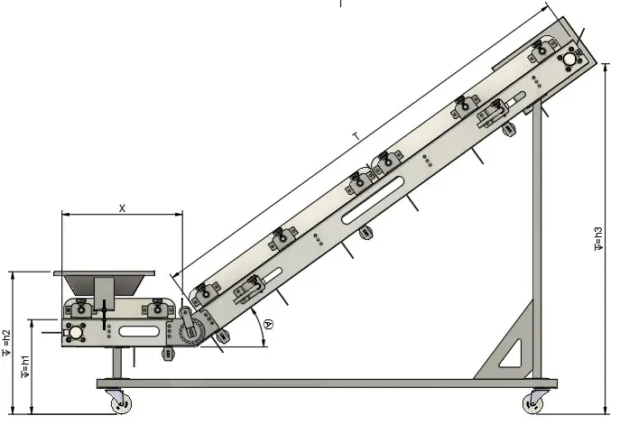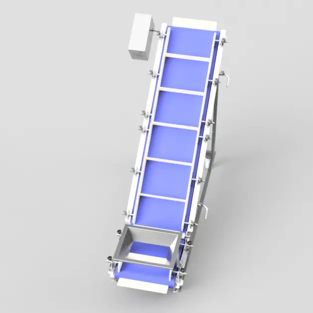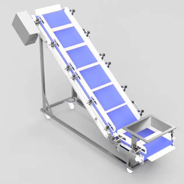 Genişletilmiş kovalı yapısı ürünü nazikçe kavrar, eğimli hat boyunca dökülmeden taşır. Paslanmaz çelik gövdesi, kolay sökülüp takılan gerdirme sistemi ve yüksek yıkama dayanımı sayesinde temizlik süreleri kısalır, üretim duruşları minimuma iner.