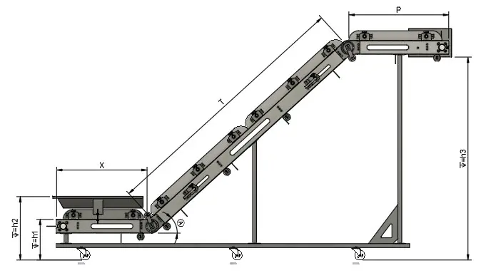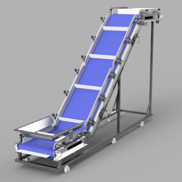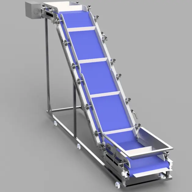 Genişletilmiş kovalı yapısı ürünü nazikçe kavrar, eğimli hat boyunca dökülmeden taşır. Paslanmaz çelik gövdesi, kolay sökülüp takılan gerdirme sistemi ve yüksek yıkama dayanımı sayesinde temizlik süreleri kısalır, üretim duruşları minimuma iner.