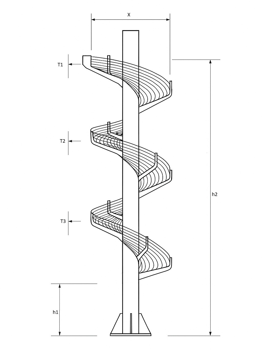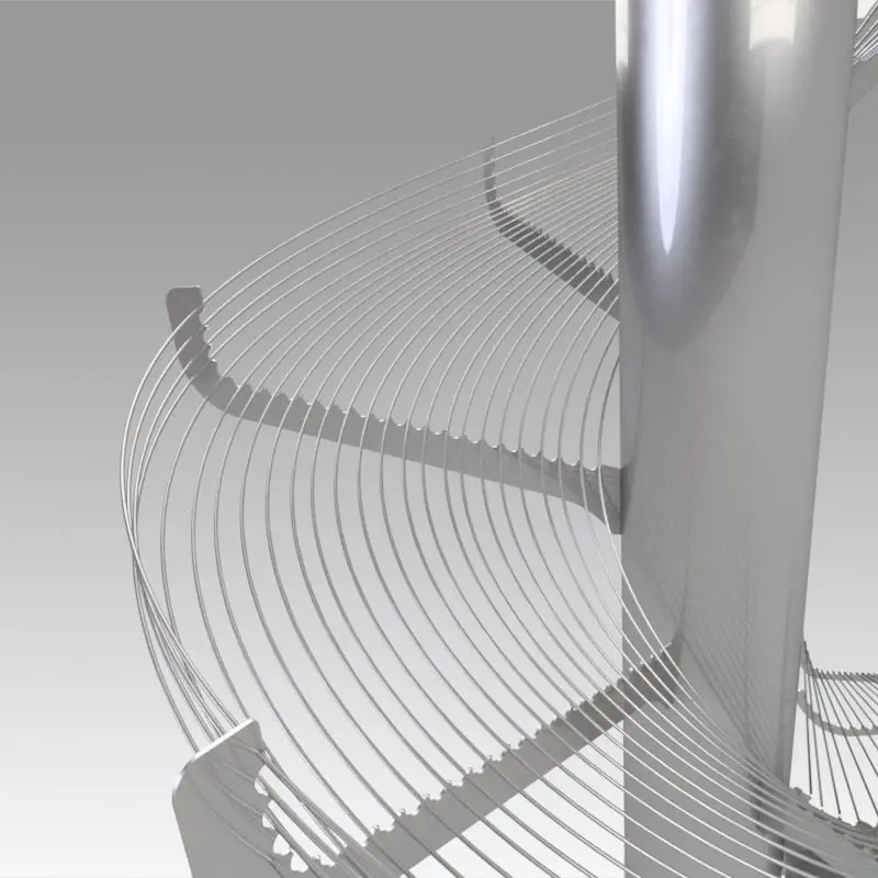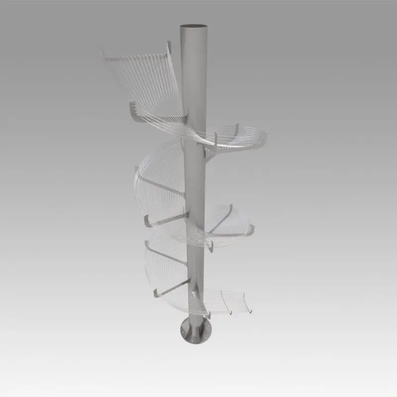 Bant yerine sabit paslanmaz millerden oluşturduğumuz katlı spiral indirici, ürünü yerçekimiyle nazikçe aşağı taşır. Motor yok, redüktör yok; aşınma en aza iner, temizlik ve bakım kolaylaşır. Ürün çizgisi bozulmaz, hat ritmi kesilmez.
